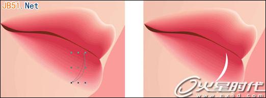 (3)使用"三点曲线工具"绘制新月形状并填充白色,作为嘴唇上的高光。