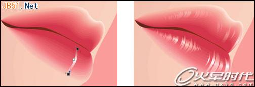 (2)将上下唇原地复制多份,再加以调整(调整时每个图形的节点保持统一)。然后在它们之间创建复合调和。