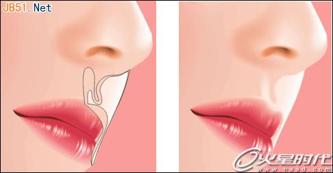 (1)绘制几个封闭图形作为嘴唇,填充一下渐变。