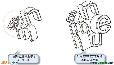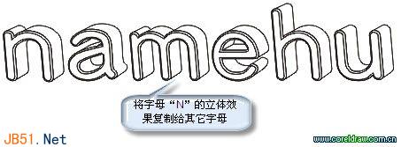 3、将字母图形“N”的立体属性复制给其他字母图形,得到如下图所示的效果。