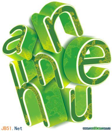 四、为立体字添加渐变及图案(为了看清效果,偶只显示字母a)。