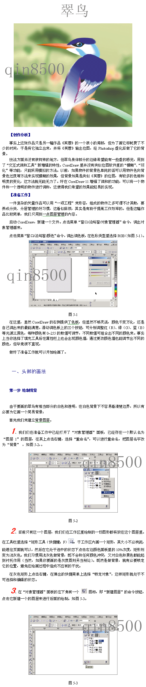 关于翠鸟的介绍还有好多,本章就只介绍这一点,如果还想知道更多的话就去百度吧,好,话不多说,我们来一起看看翠鸟如何绘画吧