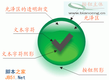 在制作之前,首先要分析一下按钮的各部分组成及其形状,典型的按钮大致分为以下几部分: