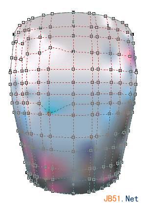 11)下面对它进行填色。选取互动式网状填色工具单击花瓶图形,然后在属性栏中设置“格点大小”的行列数分别为13和12,然后选中各个节点可以进行填充。这里不需要什么填充规则,你可以按个人的喜好和直觉进行选色,最后取消它的外框颜色。我填充的效果如图: