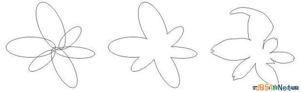 (14)下面要制作的是一个盛开的花朵,现在来画它的轮廓图。如果直接用贝兹曲线工具或手绘工具去徒手画有一定的难度,简单的方法是先用一些椭圆形组成一个简单的花朵图形,然后将它们全部焊接成一个曲线图形,再选用造形工具进行修改,最后得到一个花朵的曲线轮廓图形,如
