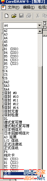 1.启动CD软件,按Ctrl+N新建一个文档,用选择工具选择“纸张类型/大小”如图一,选择“名片”模板,(名片尺寸一般为90×55)横式名片请选择纸张类型为“横向”。