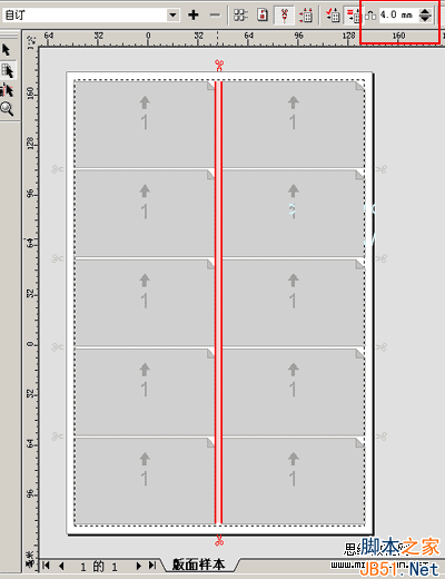 6.用“预折版面工具”点击“垂直栏间距”,栏间距呈红色显示;设置垂直栏间距大小,参考值为4,设置水平栏间距,参考值为2,如图六。