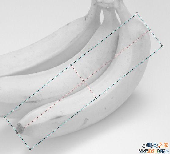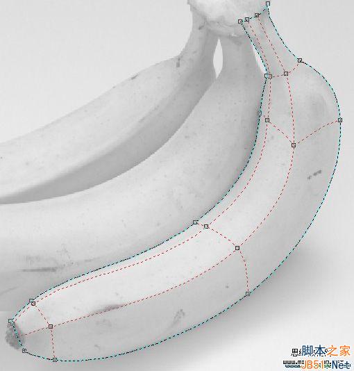 12、在紧靠香蕉的两条主要突起棱附近各添加一条网格线,并填色,使主要分界线显出来,体现出立体感,在主要突起棱附近加网格是为了不让分界线太硬。如下图。