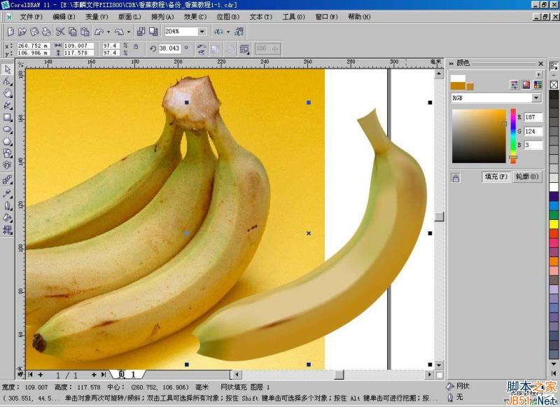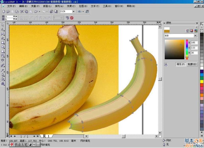 应网友的要求,我把香蕉的制作过程整理出来,这算不算教程暂且不论,主要目的是想和大家一起讨论CD中互动式网格填充的用法。关于介绍这方面的书太少了,有也是一笔代过,包括一些“宝典”级的大部头著作也是如此,我们只能靠自己来摸索了。