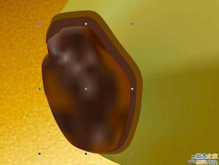 6、用互动式网格填充工具拖动并调整节点到下图模样,工具用法与形状工具相同,要点是让那根长轴中