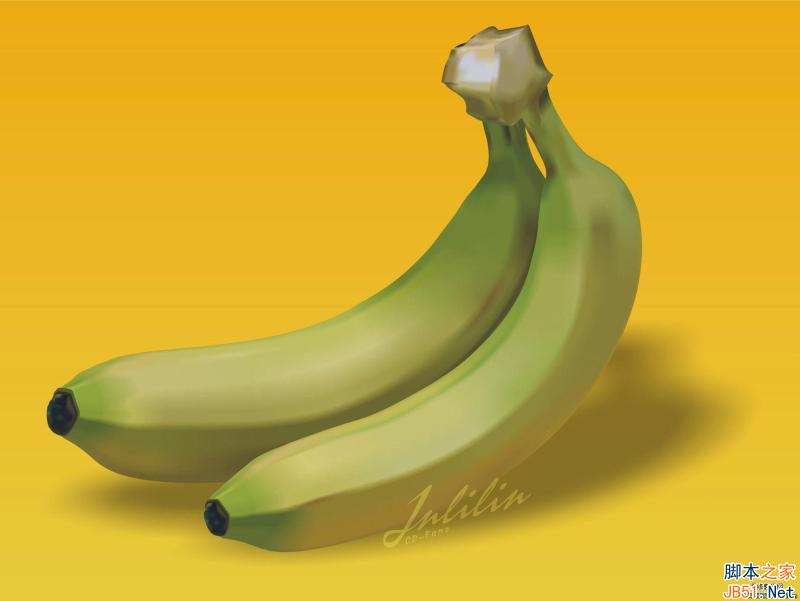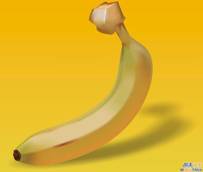 度起关键作用,如果控制柄很短,则颜色渐变会显得生硬。下图是基本着色完成的一个香蕉。