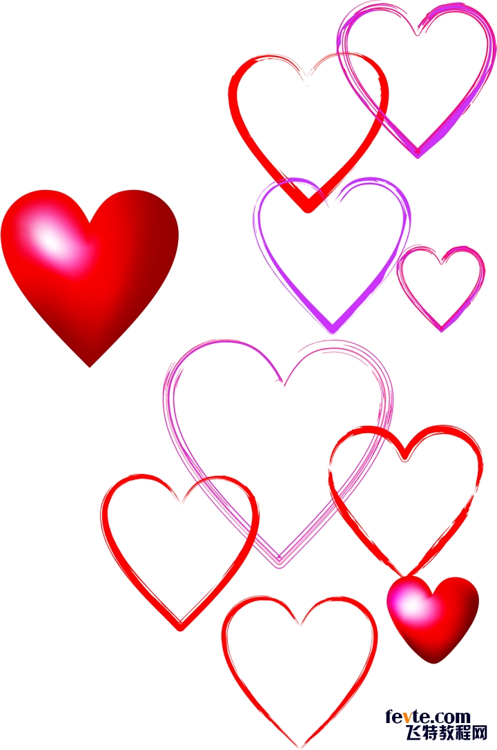 对几个红心添加一些亮度和颜色后,将它们添加到情人节贺卡绘图页面。