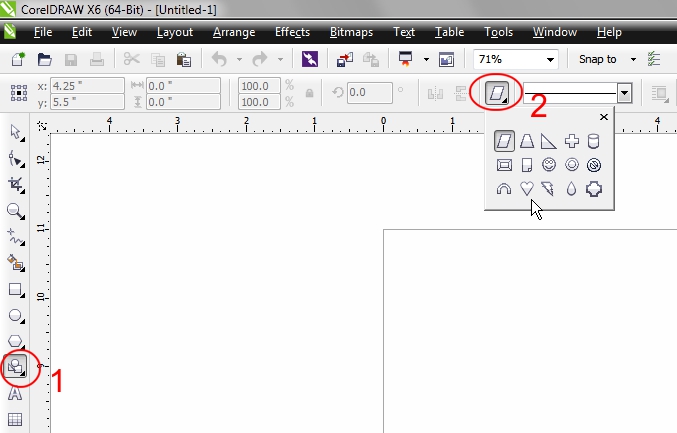 使用 CorelDRAW® 画一颗红心非常简单。只需单击基本形状工具,并在属性栏的完美形状选择器中选择红心形状即可。