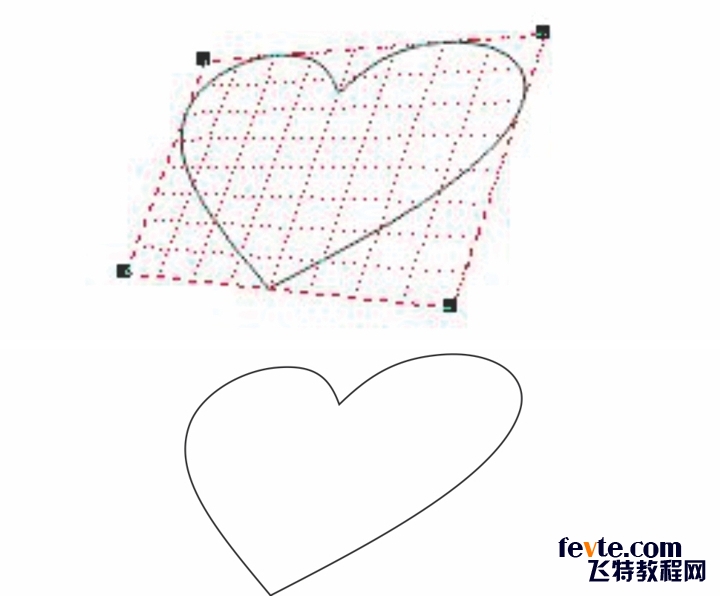 现在,我们开始画基本的红心图案。对该形状进行修改的方式有很多种,例如,您可以通过单击效果 > 添加透视图来添加透视图,并调整透视图网格线。还可以使用封套工具创建相似的效果。最重要的是运用您的想象力。使用 CorelDRAW 创建独一无二的原创设计有各种各样的方法。