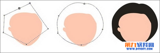 用贝塞尔工具画出头发的基本形状,然后用形状工具选中全部节点,按ctrl+Q转换为曲线后调节为如下形状,按shift+pagedown置于面部之后,填充黑色。头发的线条圆润一些会显得乖巧。