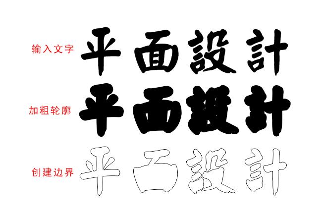 第一步:输入文字》》》加粗文字轮廓》》》创建边界