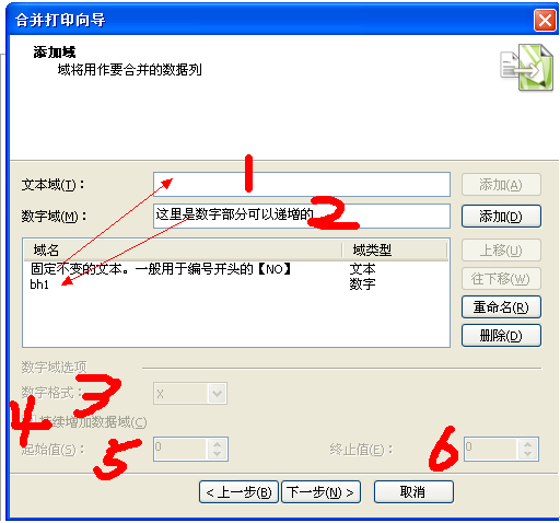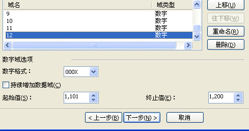5、起始值这里写的编号的起始值,例如我们这个教程要做1200个。我在一个页面建了12个图。。那么每个域的起始值就是第一个是1、第二个是101,第三个是201,第十二个是1101以此轮推。