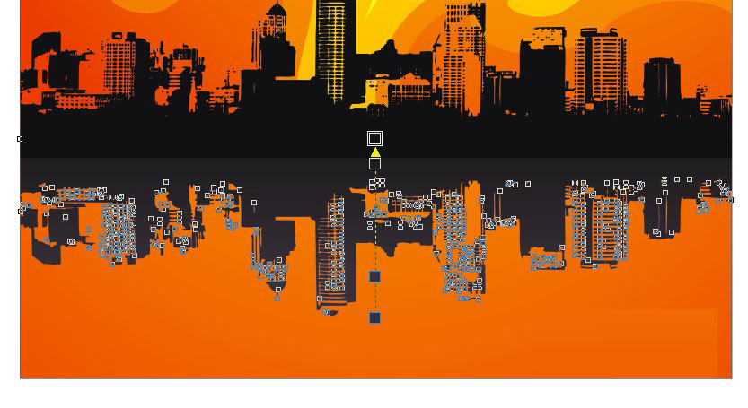 步骤五:将建筑物放置中间,并用Ctrl+鼠标拉下一个并复制作为建筑物的倒影!