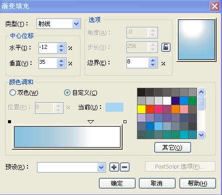 1、启动coreldRAWx4,新建空白文件,在属性栏设置宽“297MM”高“150MM”并填充颜色渐变,去除轮廓线,如下效果图。