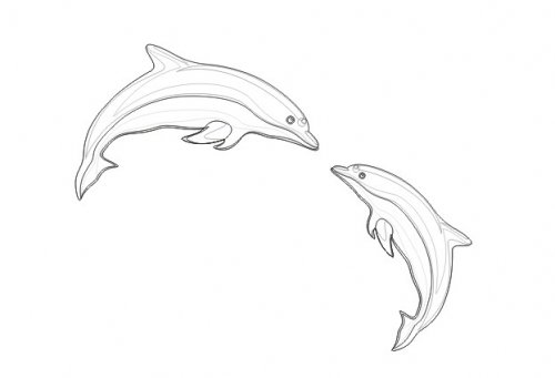 8、选择工具箱中的贝塞尔工具绘制海豚的轮廓,有些部分需要做透明度处理,并填充颜色,可以根据自己的创意做出不一样的海豚,效果图如下。