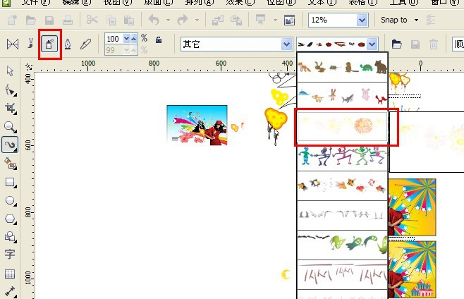 选择艺术笔,喷灌。