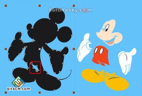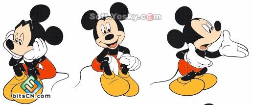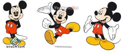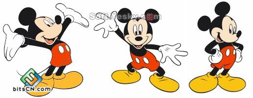下面先给大家看一下米老鼠的原图,本文只介绍其中一种造型的绘制方法,原文件中会给出一套米老鼠的动作给大家参考,可以直接导入CorelDRAW中进行分析。