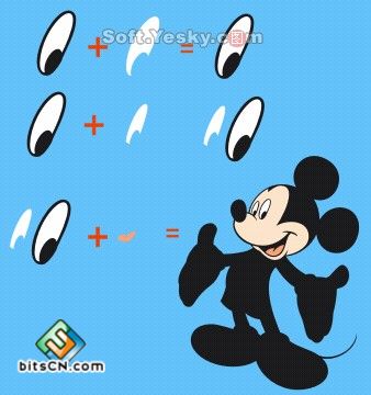 朋友们一定看过动画片米老鼠与唐老鸭的动画片吧?今天就是要教大家绘制卡通的米老鼠(Mickey mouse)。不过今天我们不像以前讲实例一样一步一步地来讲,而是着重介绍绘制思路。一个动画片或是图像的形成必须靠设计人员精心的设计与创意。有些朋友经常在照着实例来学习,可如果把实例的文章放在一边,自己绘制就会画不出来,原因是什么呢?那就是因为在他们的大脑里只注重在于制作出这个东西,却忘了学习设计制作的思路。