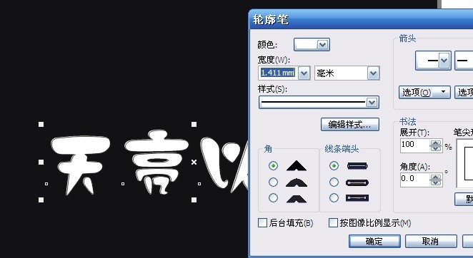 4、然后按F12·描边属性里··大小可以自己定··我下面的数据只是我的字体的数据··