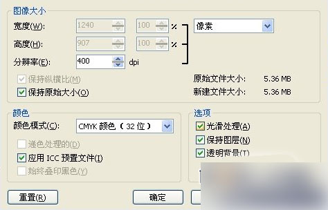 4.参数设置,要注意的是:为了合适印刷,分辨率请大于300dpi,勾选保持图层