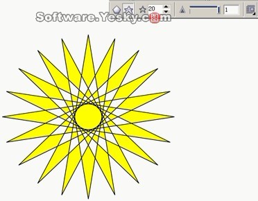 点击多边形工具,按在工具栏上的"星形"按钮,并设"多边形的点数"为20,及设定一个20个角的星形。设定"多边形的锐度",把它的滚动条拖动到最右边。按"ctrl"键,按住鼠标左键,绘出一个星形(如图12)。