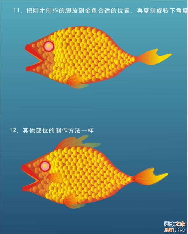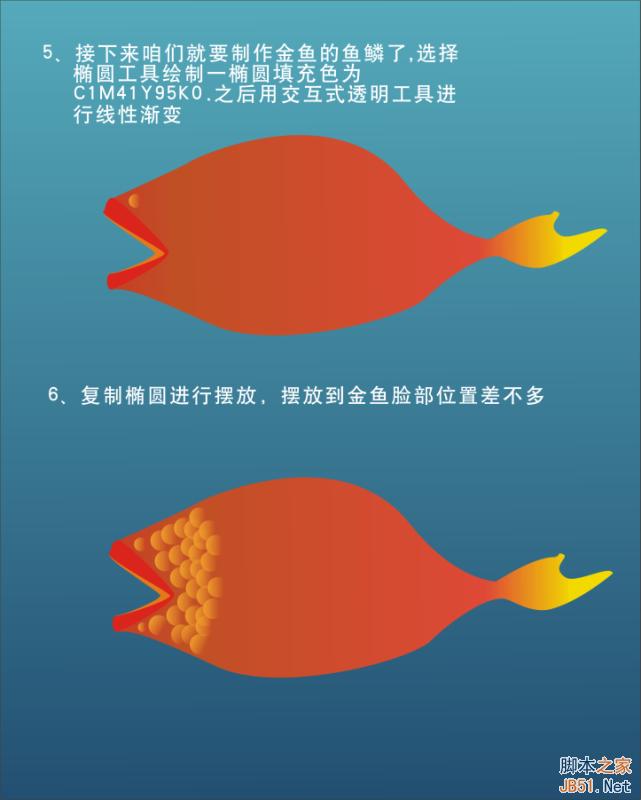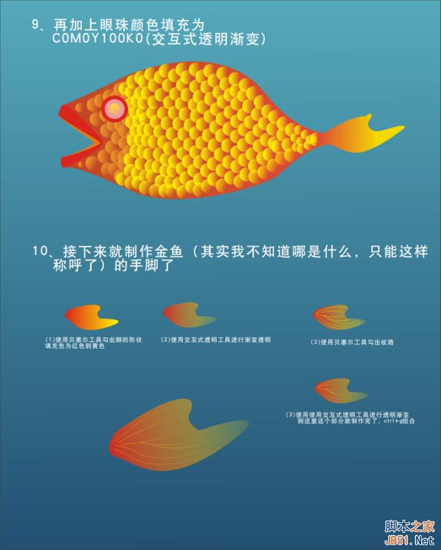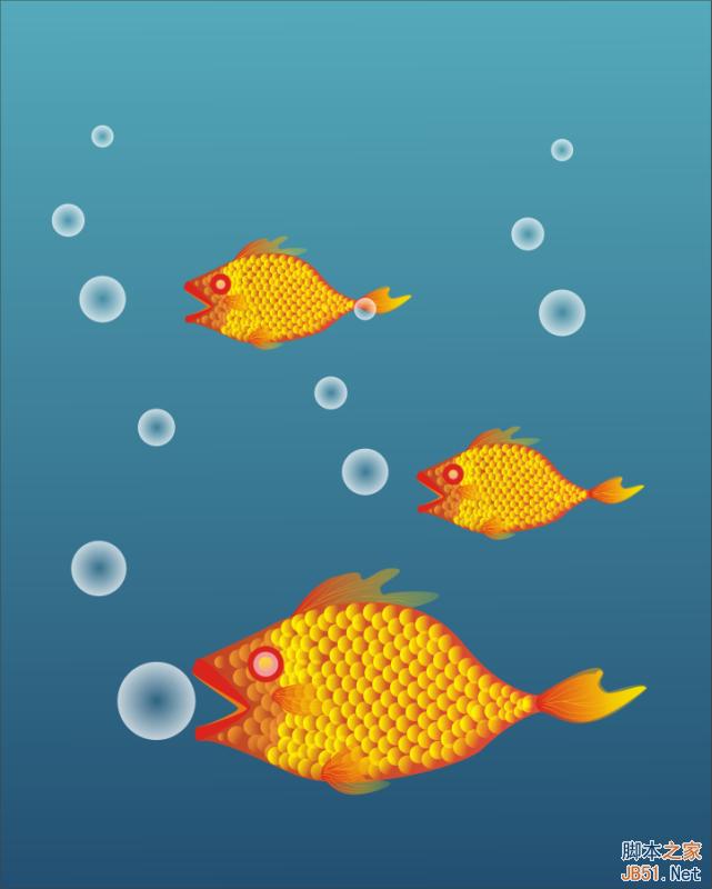 这篇教程是向脚本之家的朋友介绍利用CorelDraw绘制追着泡泡的金鱼方法,教程主要使用贝塞工具和交互式工具制作金鱼,教程属于初级,我也是个新手,有不足之处请纠正。先看下效果先: