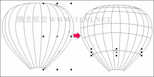 (10)接下来选择底部气球上的网格线,按下键将其放到最上层。然后参照图12-53所示打开"轮廓笔"对话框,设置网格线的线型和轮廓宽度,如图12-54所示。