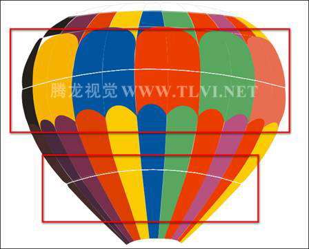 (3)使用工具箱中的"贝塞尔"工具,参照热气球上的网格,在上面绘制图形,并分别设置其填充颜色,如图12-40所示。然后使用"选择"工具框选绘制的图形,按下键,调整其顺序到气球上网格图形下面。