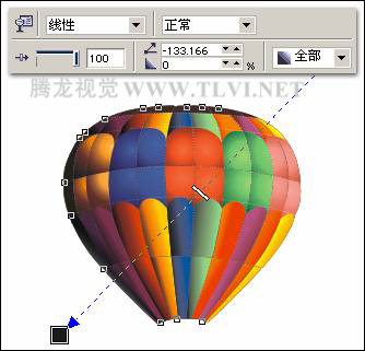 (6)使用"选择"工具,选择气球中间部位的图形,使用"交互式填充"工具,在图形上拖出渐变,在"填充类型"下拉列表框中选择"射线"类型。