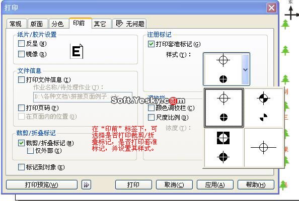 为了便于裁剪,还可以将裁剪标记折叠标记等打印出来。方法是: