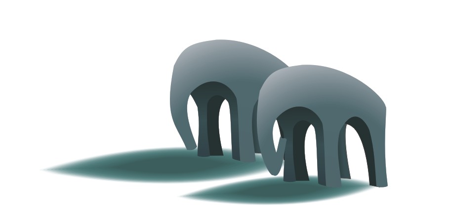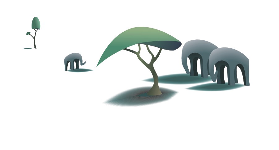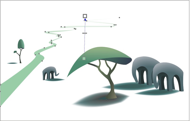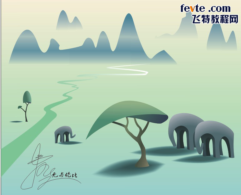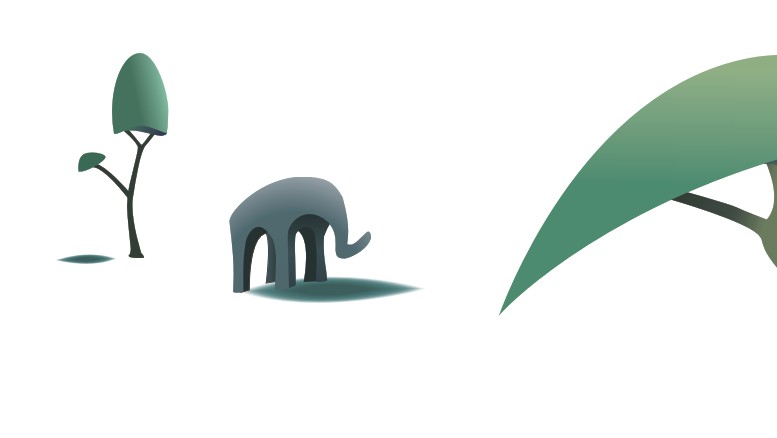 16.把另一头大象画出,可以将原先的大象复制改变鼻子的形状。用先前画树阴影画出两头大象的阴影。如图所示