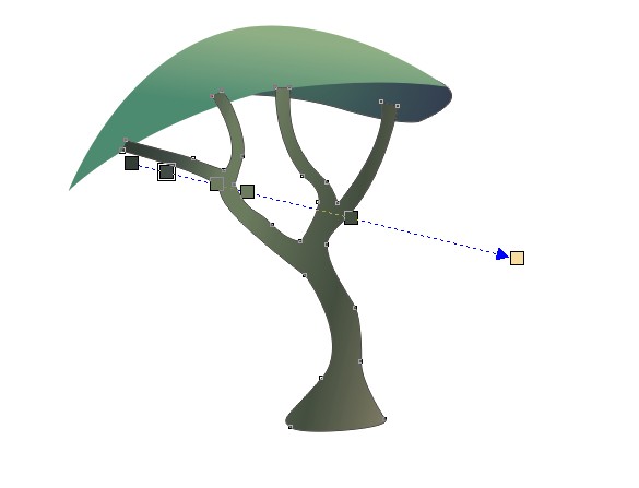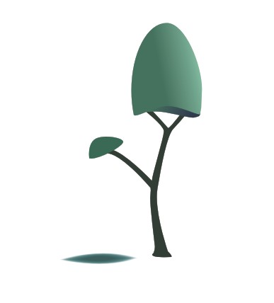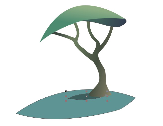将原先画的两图形去掉轮廓。在下面勾出树干的轮廓。用钢笔工具或贝塞尔工具皆可