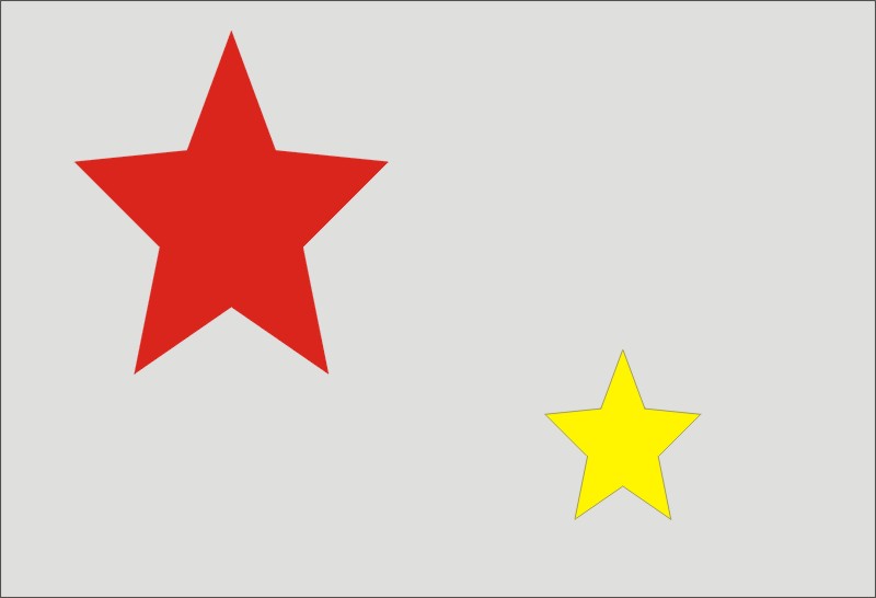 1. 画一个五角星,再复制一个出来一个小一点,颜色随便,(小五角星要放在大五角星的下一层)如下图: