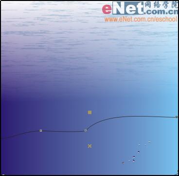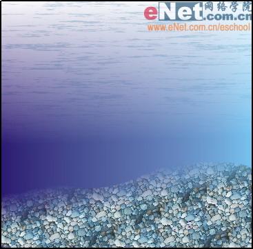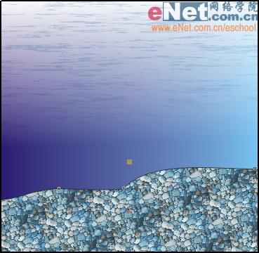 10、选择工具箱中的交互式透明工具”,将光标置于石头与水面的交界处,向下拖拽鼠标,编辑图形的透明效果,如图6所示。