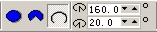 9.用椭圆工具配以Ctrl键在绘图区空白处画一个圆,在属性栏中将形状定为"弧形",调节"起始角度和结束角度"参数,分别设为:160和20 。