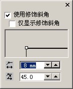 ,在弹出的对话框中选中"使用修饰斜角",将"斜角深度设为0.8","斜角角度"设为45度,如左图,回车确定,取得的效果如右图: