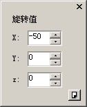 ,在弹出的对话框中选择"设置参数"按扭,对话框转变成参数设置对话框,将X旋转值设为-50,其它值设为0,如图: