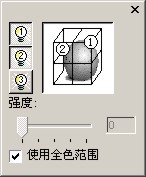 ,在弹出的窗口中将光源添加至二个,各光源位置如做图所示,取得的图形效果如右图: