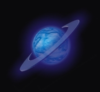 17.现在最后工作就是将光带和星体组合在一起并将光带进行一些细微的旋转和缩放使这适合星体的大小并从感观上让人误认为整条光带好像是绕着星体旋转了一周。最后的蓝色星体的效果果如图