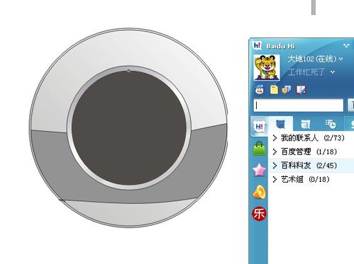 2、首先,点击左边的圆形工具按钮,在空白的地方做出1个圆形,可以用渐变色填充灰色,颜色可以在右边的调色板充进行选择,如果你不喜欢灰色,可以选择咖啡色,粉绿色,都是可以的。