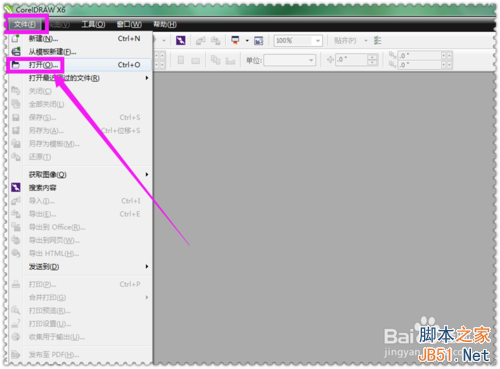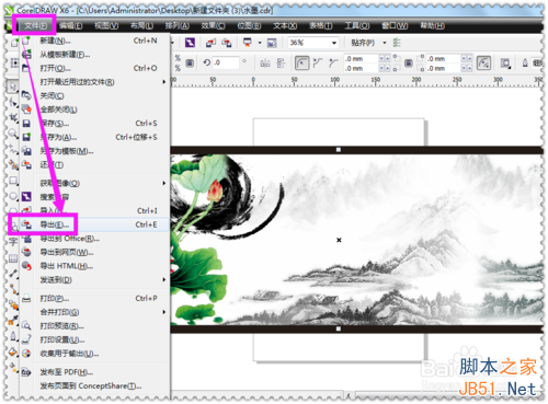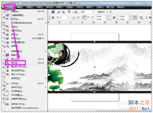 前面弄好以后,小伙伴们就点一下cdr软件界面左上角的“文件”,再在下拉列表里面选择那个“导出”。