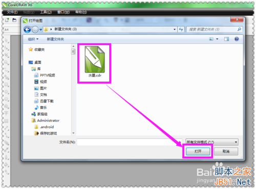 打开自己电脑桌面上的cdr软件,进入它的界面以后,我们就点一下菜单栏里面的“文件”,在下拉列表里面选择“打开”。接着,在弹出来的“打开绘图”窗口里找到自己的cdr文件,点击选中它之后,再点一下下面的“打开”。