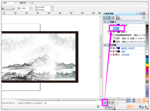 接着,小伙伴们在“对象管理器”界面底下点一下第一个类似于纸张铺起来的图案按钮“新建图层”,就会看到刚才的“图层1”上面出现了一个“图层2”。