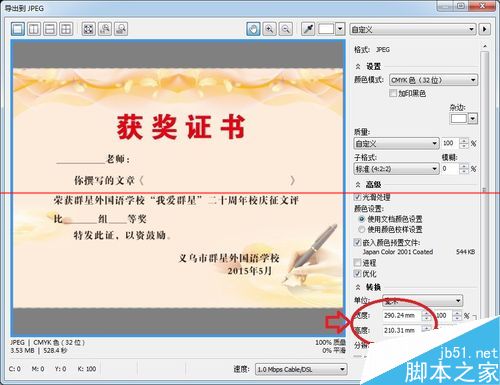 cdr导出JPG图片时,输出时的宽度和高度是零数字???解决这个问题的途径如下: