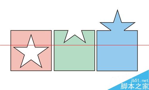 3、合并后看到正方形上方多出了五角星的三个角,填充颜色后可看出具体形状。